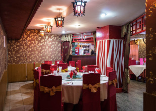 Заведение разделено на один просторный банкетный зал и два небольших. Элементы интерьера знакомят посетителей с культурой Китая: мебель из черного дерева в стиле минимализм, традиционные китайские фонари, золотые фигурки, привлекающие удачу и изобилие. Гости могут присесть за уютные столики и ознакомиться с меню, которое иллюстрировано яркими фотографиями блюд.